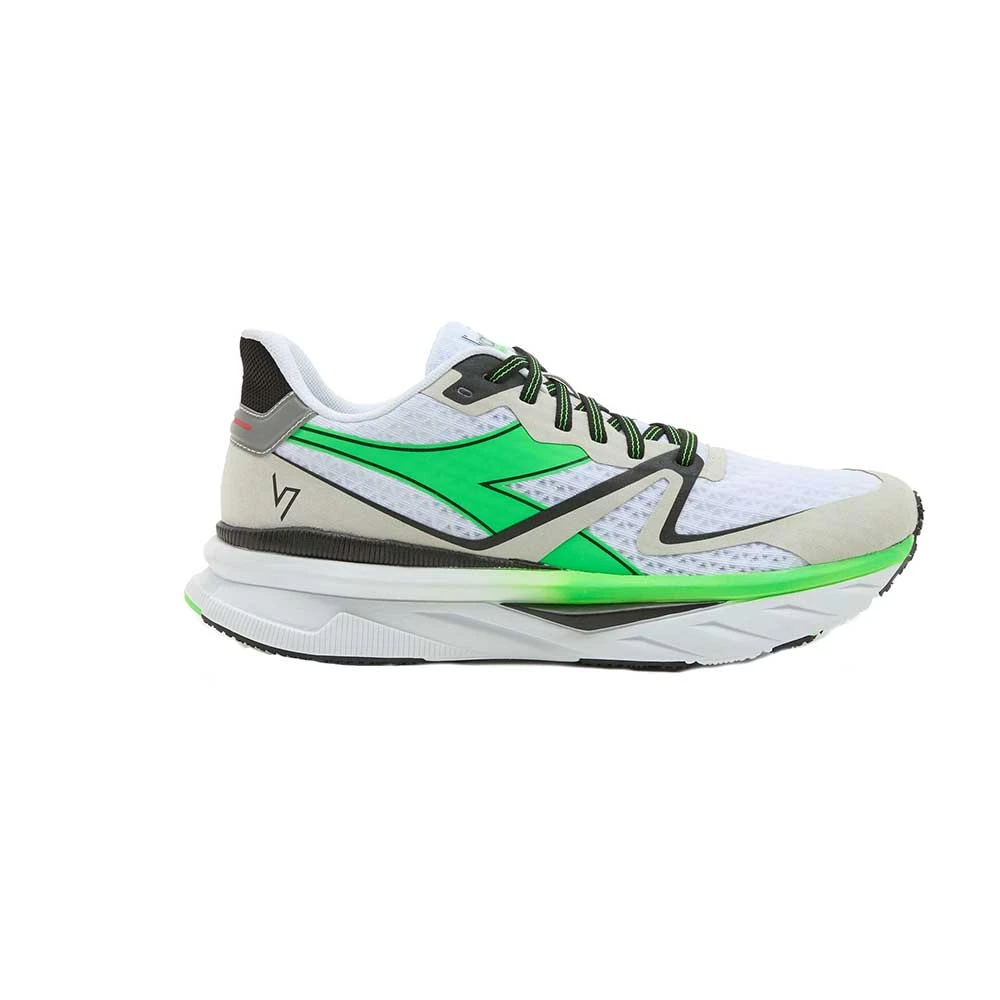 The Atomo V7000 stands out with its responsiveness and lightweight. The made-in-Italy “equipe atomo ” project is the utmost expression of the Diadora brand’s uniqueness in a max cushion, lightweight, neutral trainer.